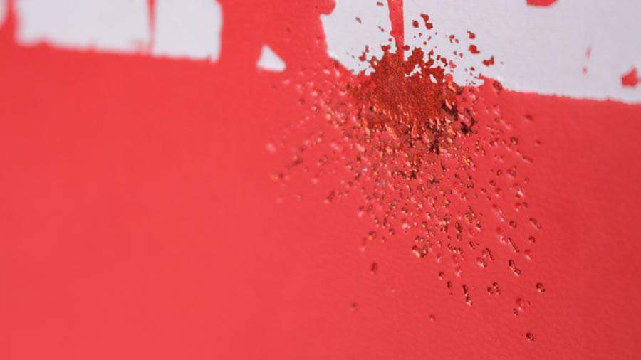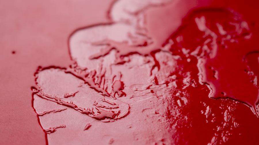 Red foiling for blood also debossed