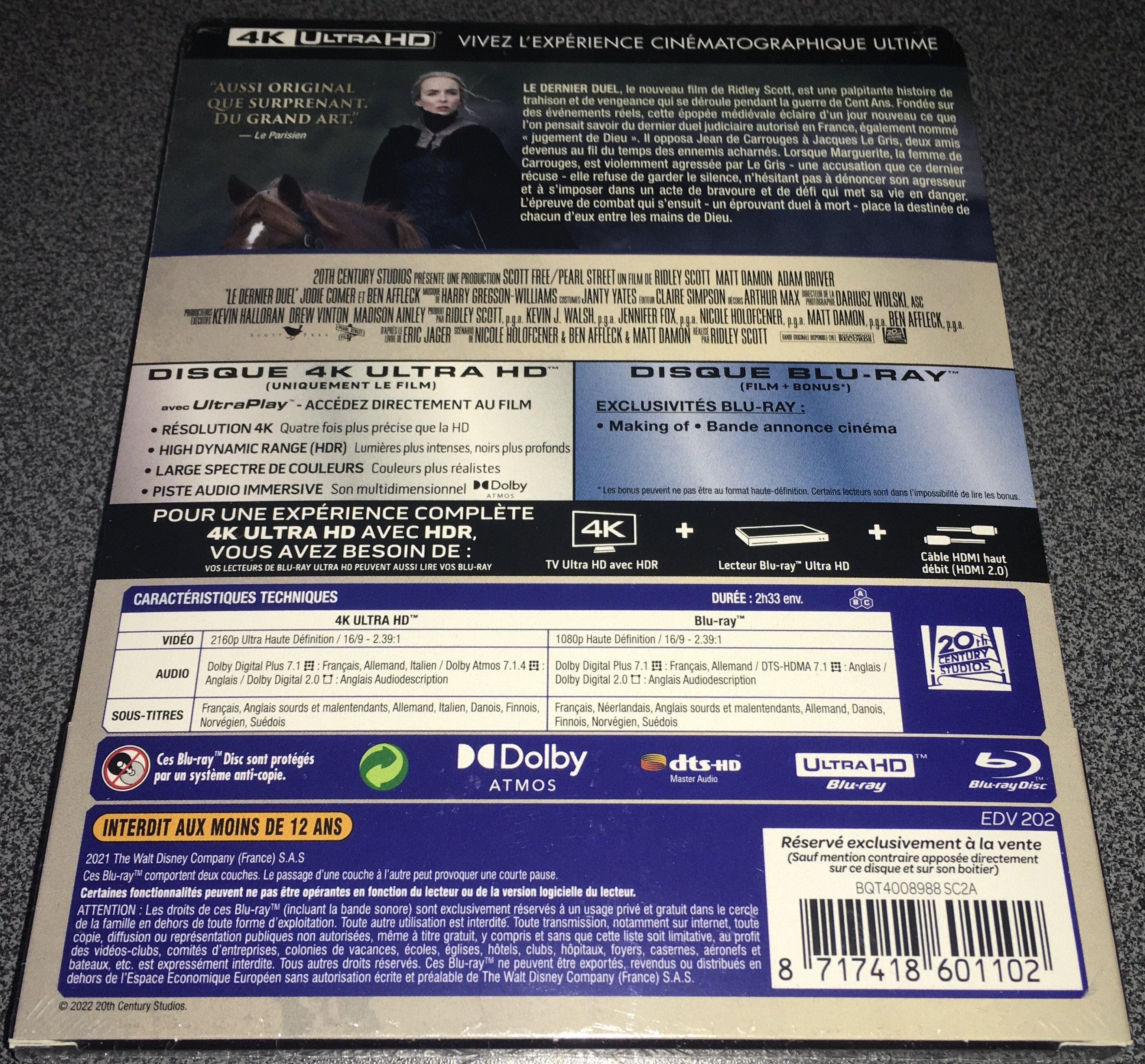 Attention, les traces beige sr le steelbook sont volontaire, ce n'est pas un défaut sur la photo. Sinon, flyer a un titre FR, alors que le steel a un titre anglais. les discs ont le titre en Fr & Anglais).