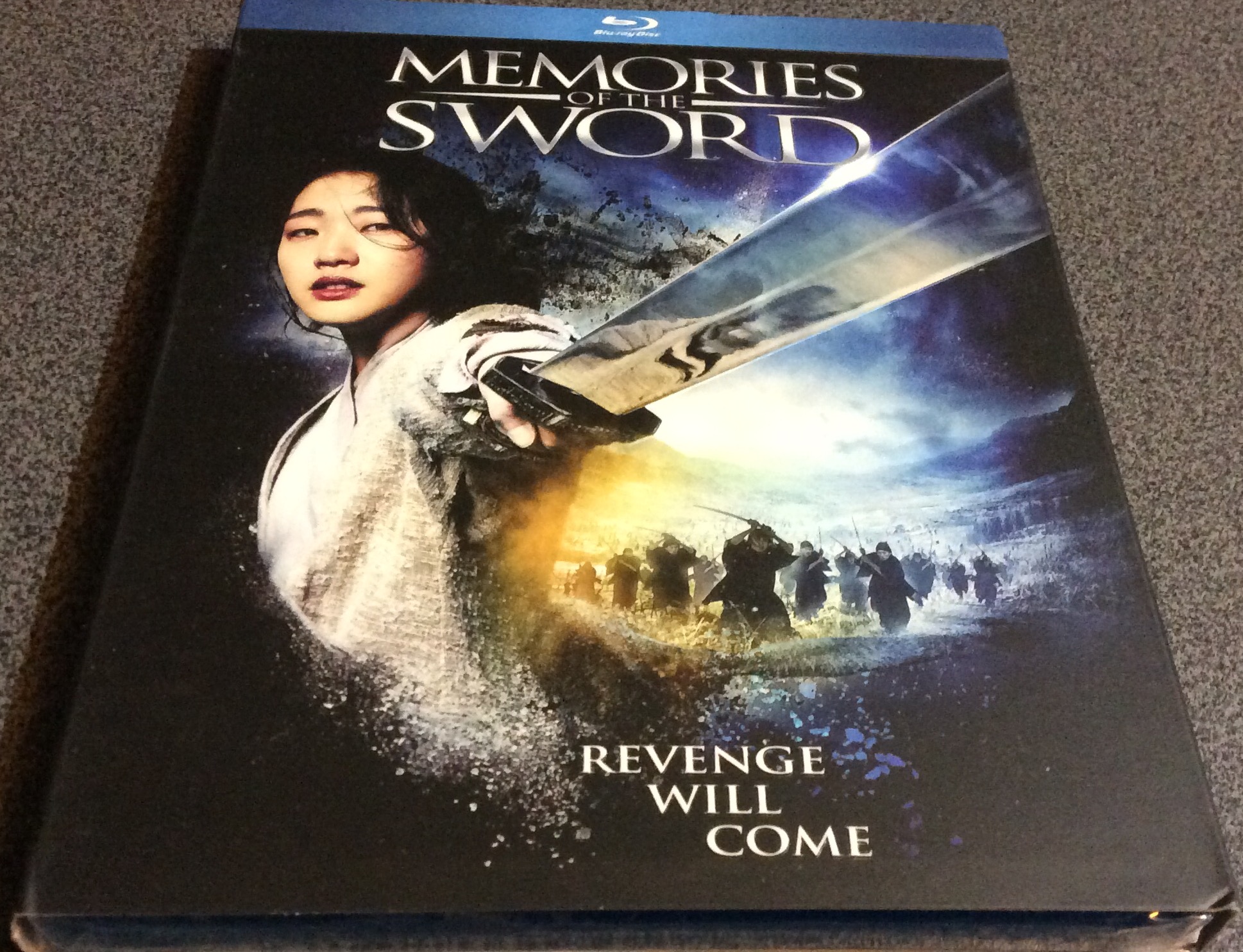 import us ... encore du bon boulot de "Well Go USA" .... fourreau avec titre & "revenge will come" embossed, ainsi que le sabre, ou les ptites photos au verso sont spot gloss.